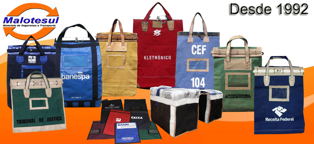 malotes para transporte de valores e documentos, pastas em nylon e lona, bolsas em nylon e lona. envelopes emborrachado e nylon, urnas, alforjes e sacolas